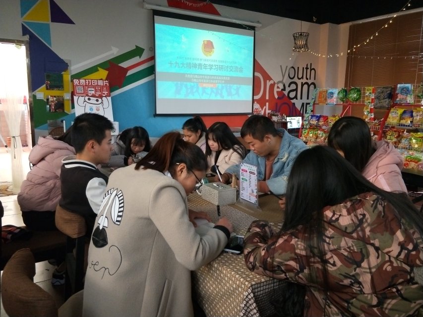本网讯 青年兴则国家兴,青年强则国家强,青年一代有理想、有本领、有担当,国家就有前途,民族就有希望。为积极营造庆祝十九大胜利召开、学习贯彻十九大精神的浓厚氛围。近日,旅外系团总支学生会在校大学生创业基地“众创吧”举办“新时代 新思想 新青年 放飞新时代青春梦 学思践悟十九大精神 — 十九大精神青年学习交流会”,此次交流会由旅游与外语系学生会主席姚浩主持,旅游与外语系第七届部分学生会成员参加。
