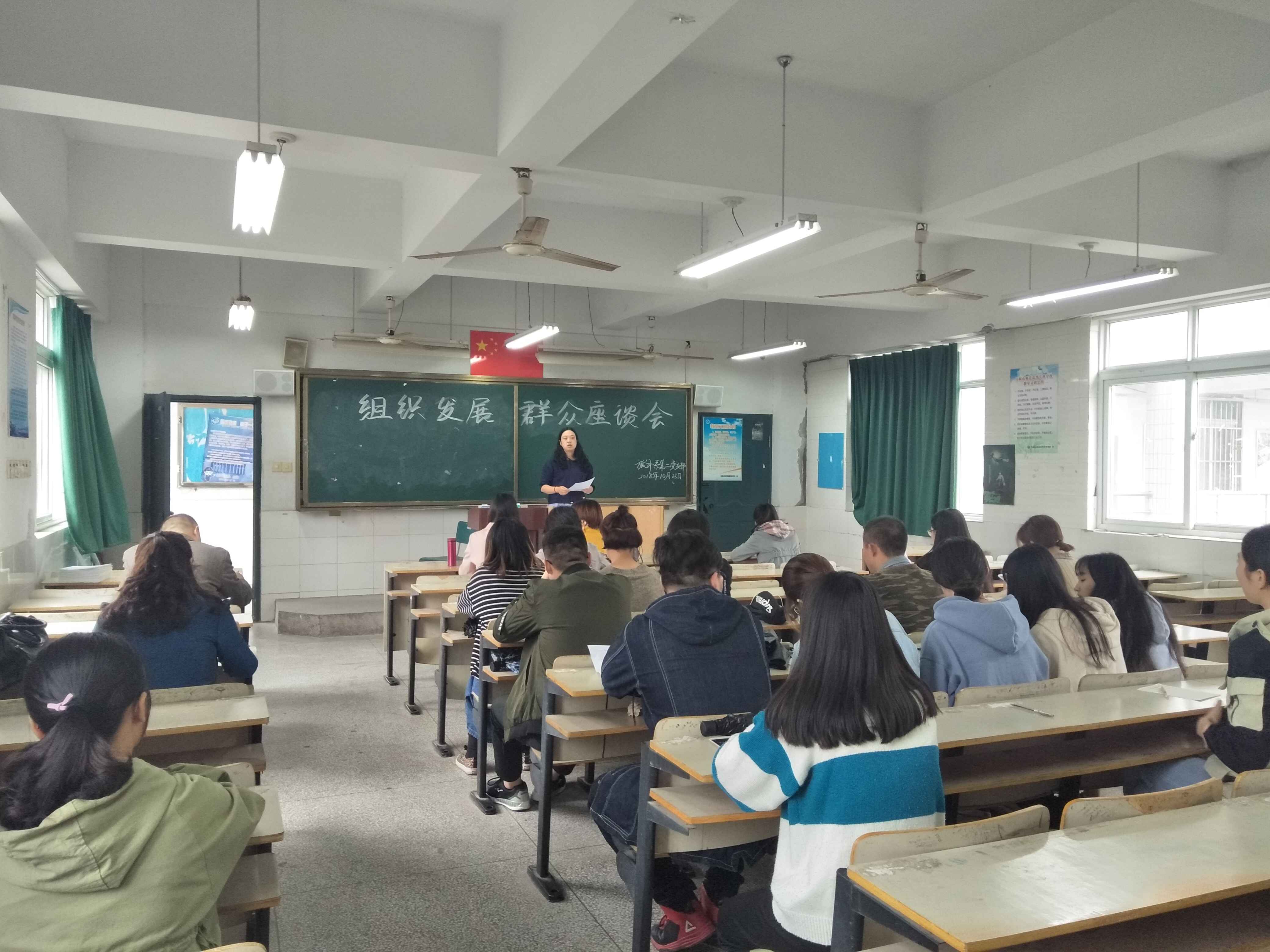 2018年10月25日中午,旅游与外语系第二党支部于E301教室召开关于拟发展对象的公推测评会。会议由支部书记翁冰清主持,全体教师党员以及18名群众代表参加了会议。
