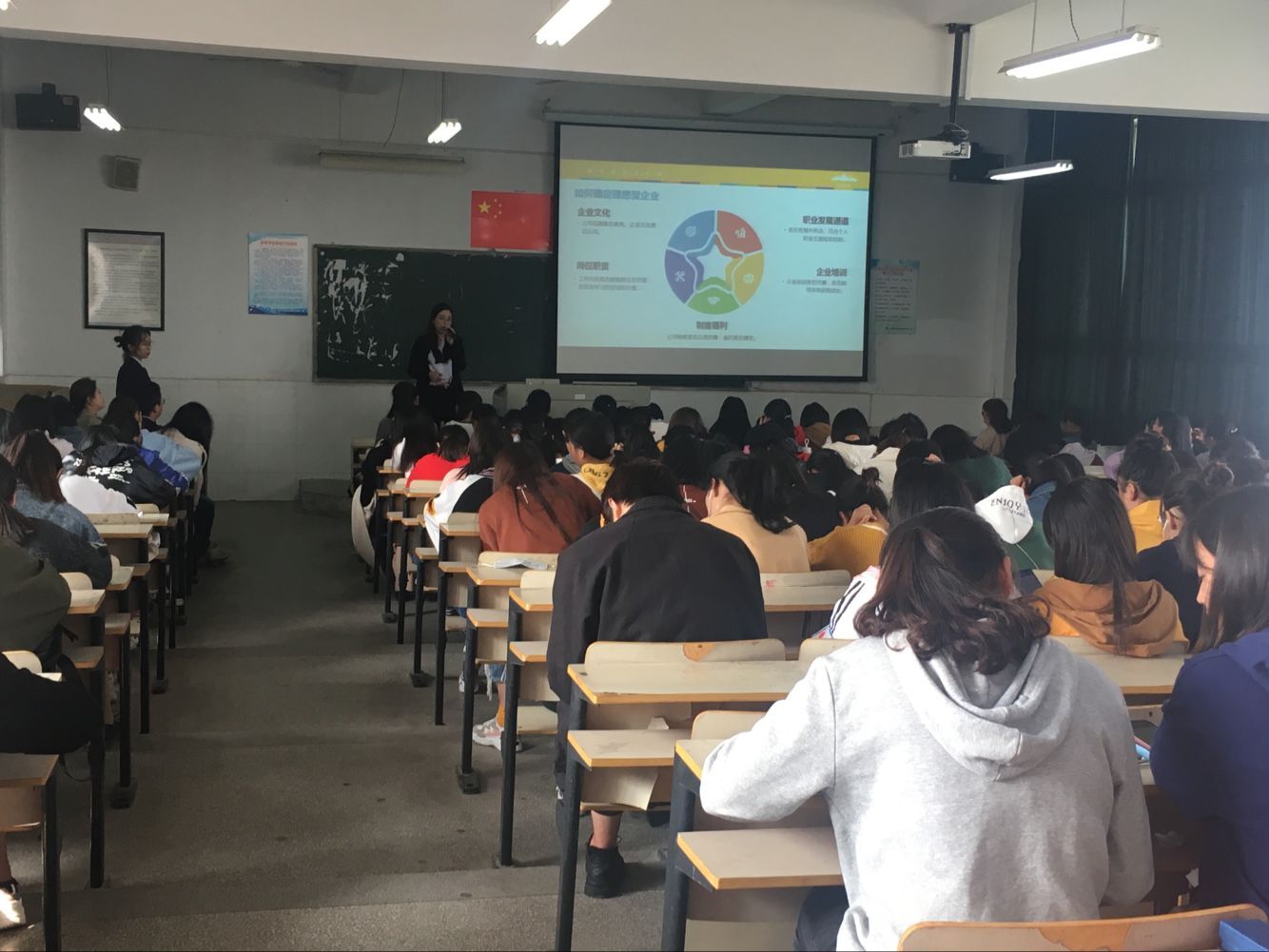 10月26日,南京欢乐谷人力资源部总监付虹、经理吴亚云一行应邀来到学校,为旅游与外语系送来了一场精彩的讲座报告。