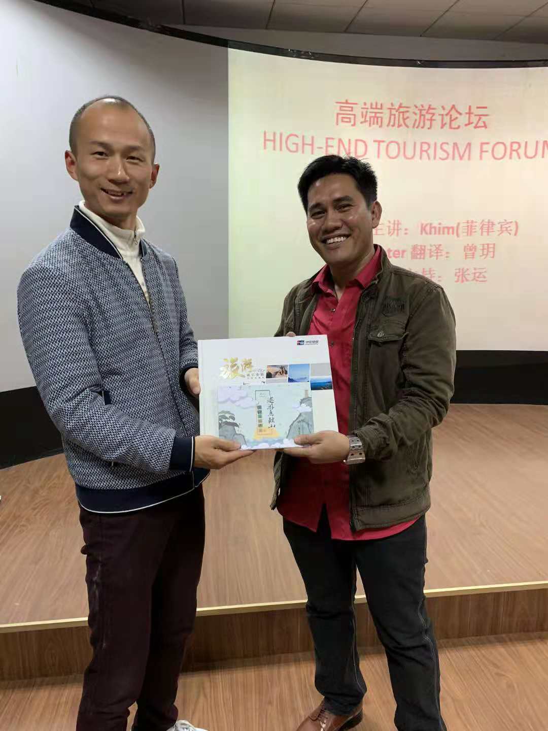为了更有效地促进外教与学生之间的教学活动,11月1日晚,旅外系旅游管理教研室开展了一场主题为“以旅游的名义学英语”的高端旅游论坛,外教Khim(菲律宾)与2018级旅游管理专业同学在旅游情景实训室进行了互动交流,旅游管理教研室主任张运老师主持此次活动,曾玥老师担当翻译。