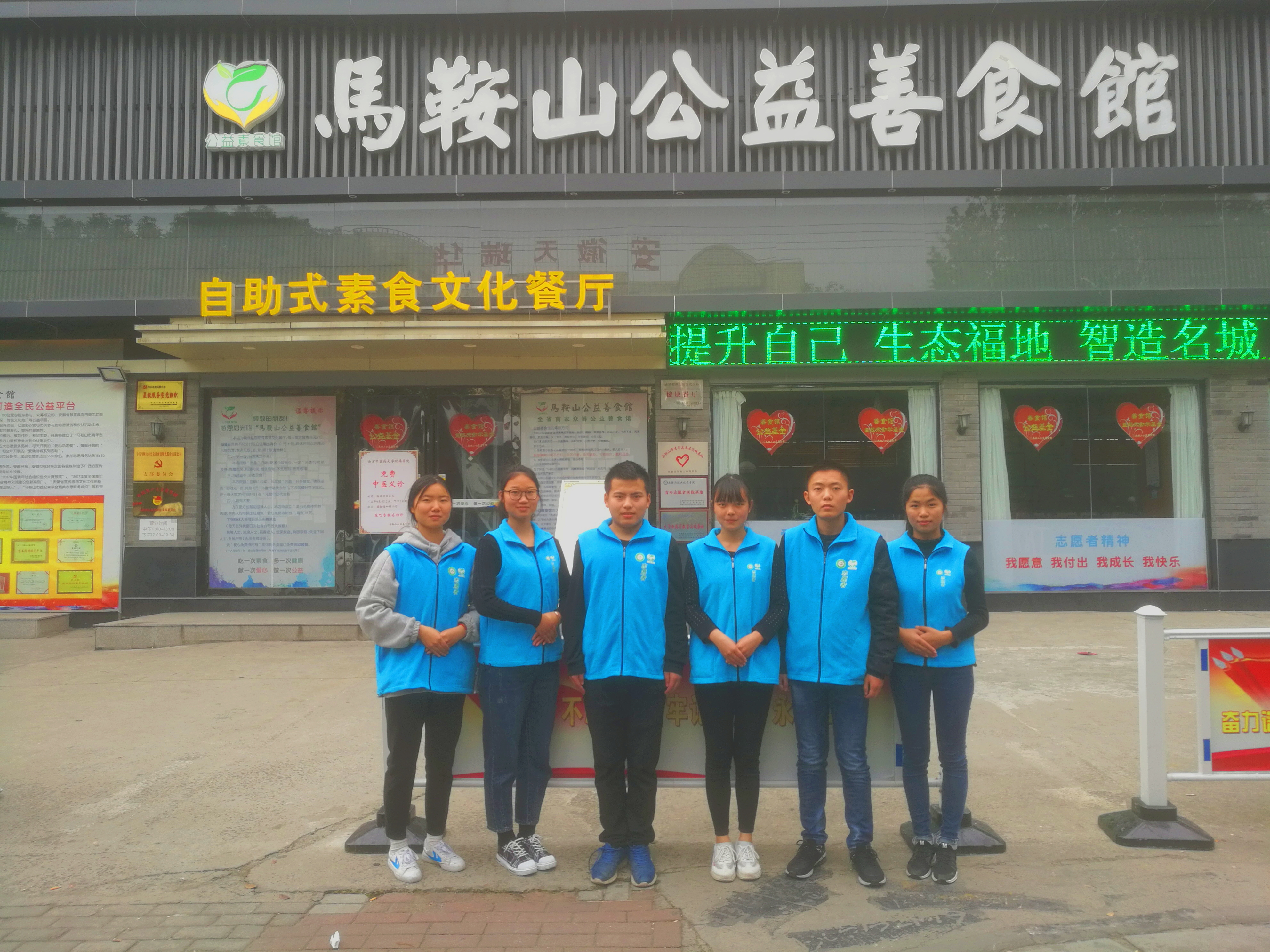 据悉,马鞍山公益善食馆成立于2016年初,是全省首家纯公益性的善食馆,由马鞍山爱心人士发起,通过众筹的模式开办素食餐馆,秉持“永不分红、永不付息、永不退股、亏损自负、盈利全部用于公益”的股东原则,推服务,促发展,为广大市民提供美味素食及丰富多彩的志愿服务。(文图/旅外系学生会宣传部张科伟 审核/汪志彬 陈燕)