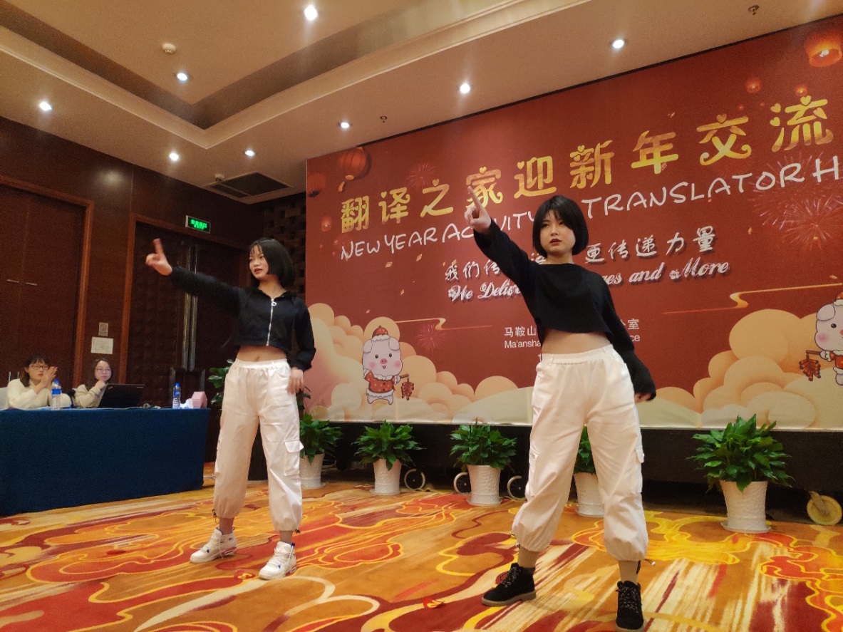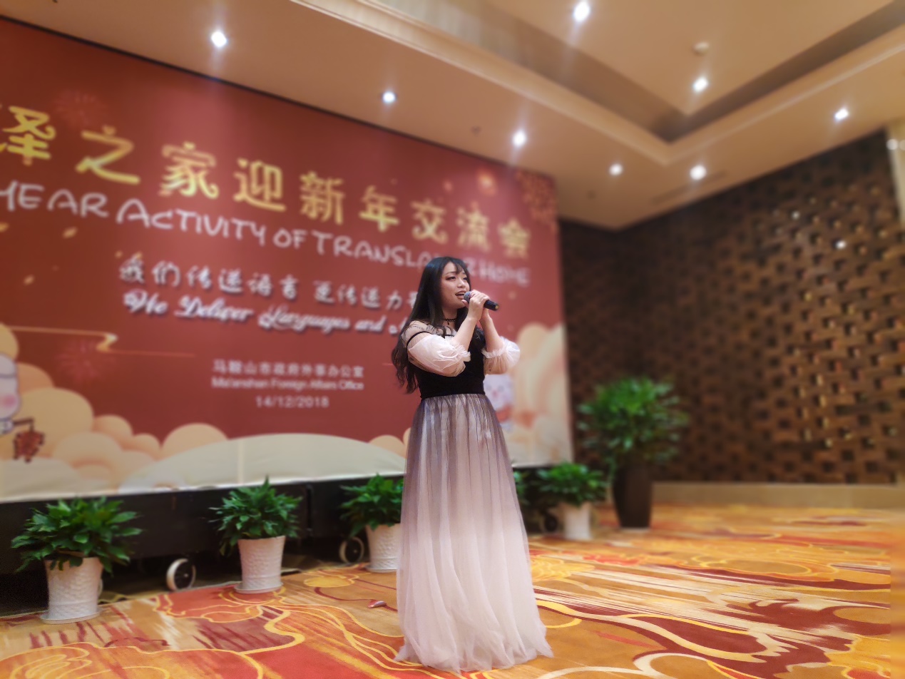 本网讯 12月14日下午,由马鞍山市人民政府外事办公室主办的翻译之家迎新年交流会拉开帷幕。本次交流会以“我们传递语言,更传递力量”为主题。市外办党组书记、主任董晓红,副主任李素琴,涉外科科长蒋燕及全市各语种翻译人才、部分在马工作的外籍人士共五十余人欢聚一堂。旅游与外语系团总支副书记姚浩带领系学生会文艺部成员共6人参加交流会并演出。