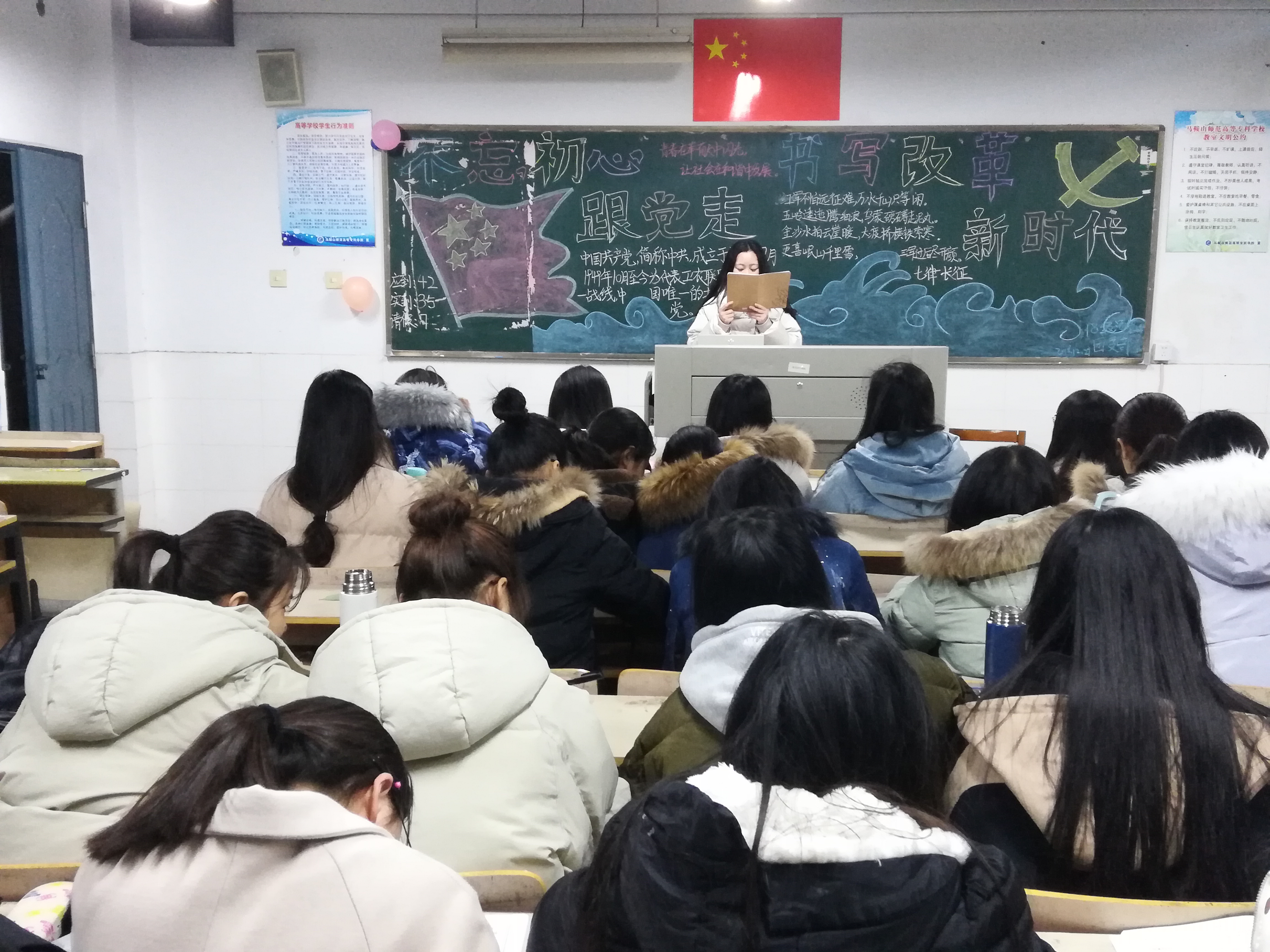 为了切实加强团组织建设,强化团员的光荣感责任感,增强团员意识,旅外系各班级于12月27日晚在D楼开展了以“不忘初心跟党,走书写改革新时代”为主题的团日活动。