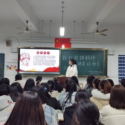 20级应用英语三班团支书利用板报和幻灯片的形式向团员们传达会议精神,介绍雷锋精神的背景和意义。雷锋精神是社会正能量的表现,对社会的发展有着很好的导向作用。弘扬雷锋精神有利于社会主义精神文明建设,提高国人道德水平和公民素质;有利于更好的推进社会主义市场经济建设,使我们的国家更加繁荣与富强;有利于人与人之间的和谐,社会主义和谐社会的构造。20级商务英语一班团支书利用ppt和视频的形式进一步学习和传承雷锋精神,观看电影《雷锋在1959》,以直观的方式了解了雷锋事迹,并将“学习雷锋”制作成主题板报。团员们还围绕“如何践行和弘扬雷锋精神,倡导时代新风正气”等话题展开讨论,积极地发表自己的观点。