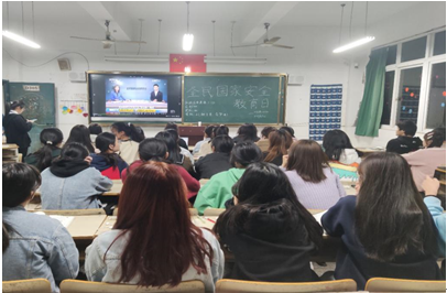 4月8日,旅外系及时张贴“对邪教说不”主题海报,通过海报宣传让同学们了解到邪教的危害。4月14日晚,旅外系组织各班开展了 “维护国家安全教育”的主题班会。各班生活委员通过ppt展示、视频播放等形式向同学们宣传国家安全知识。4月15日晚,旅外系在精业楼507教室组织学生参加国家安全知识答题活动。