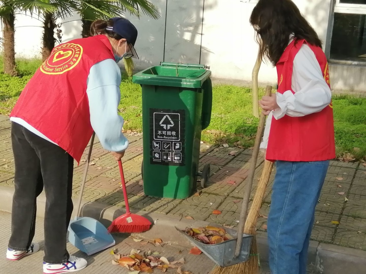 早上6点半, 21名志愿者拿着各种打扫工具来到三号门集合,在副队长高妮的带领下,志愿活动迅速展开。此次卫生清扫的对象是从三号门到一号门的主干道上堆积的落叶。志愿者们认真清扫,并相互配合,在晨光下,他们忙碌的身影成为校园里美丽的风景。经过1个多小时的辛勤劳动,落叶被清理干净,主干道的面貌焕然一新。