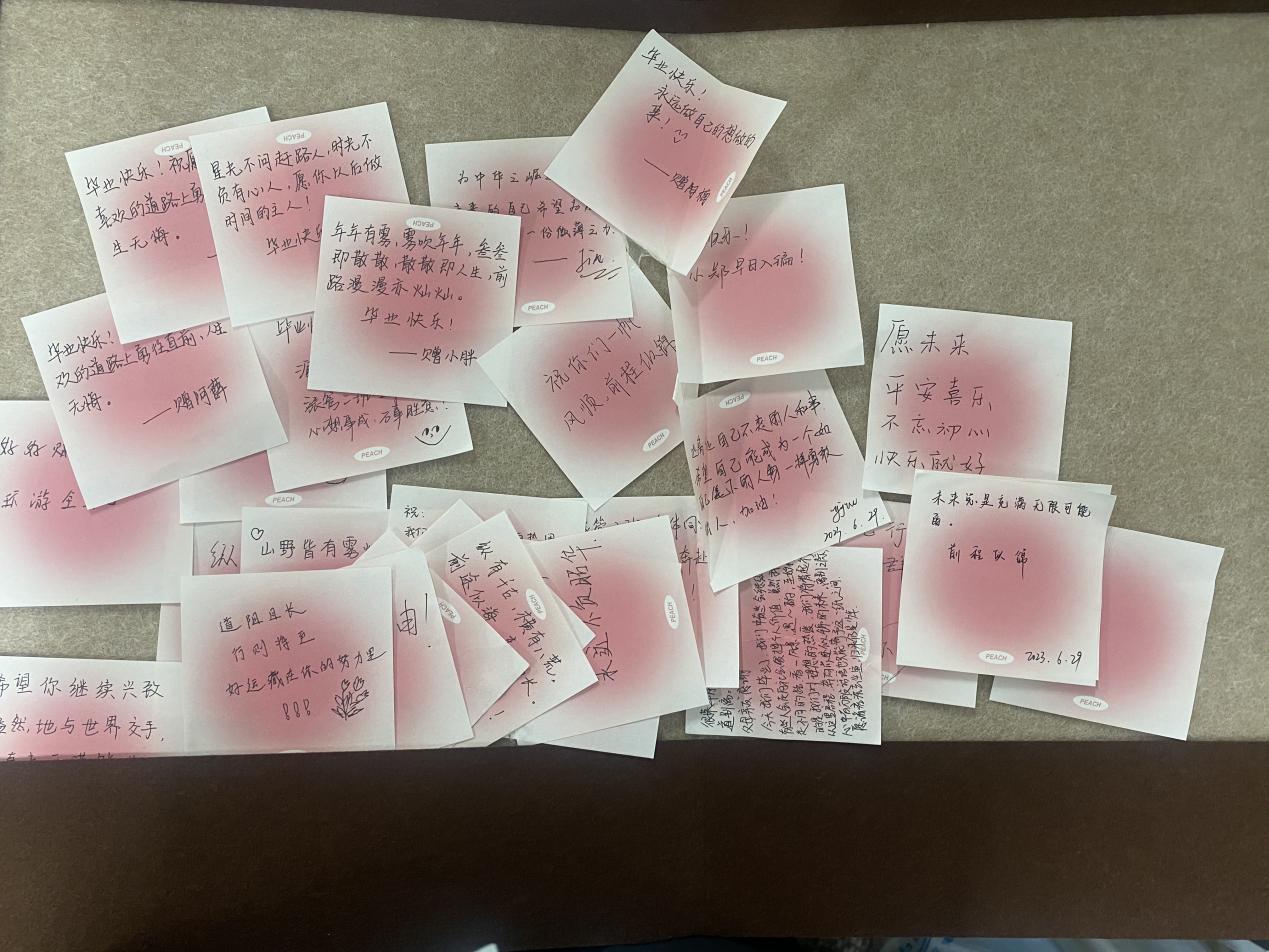 系党总支书记徐基宏,系行政负责人、副主任潘杨,系副主任王德军,系团总支书记陈盼盼,系教学秘书黄彩虹,辅导员柏达婷、朱青以及部分2023届毕业生参加活动。(图、文/系学生会办公室部宋雨溪 编辑/陈盼盼 审核/潘杨)