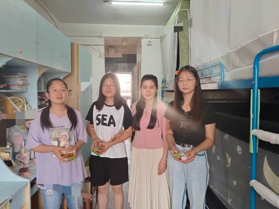 陈盼盼与毛亦艺逐一走访了留校同学们的宿舍。走访期间,陈盼盼和毛亦艺与留校学生亲切交谈,询问同学们留校的原因。有的同学因家乡偏远、车票难抢,有的同学因备考或兼职。陈盼盼和毛亦艺叮嘱同学们要合理安排假期生活,外出兼职一定要注意安全,如遇突发情况可第一时间联系辅导员。临行前,陈盼盼和毛亦艺向同学们送上了精心准备的月饼、零食,并提醒同学们关注天气变化,注意保暖。