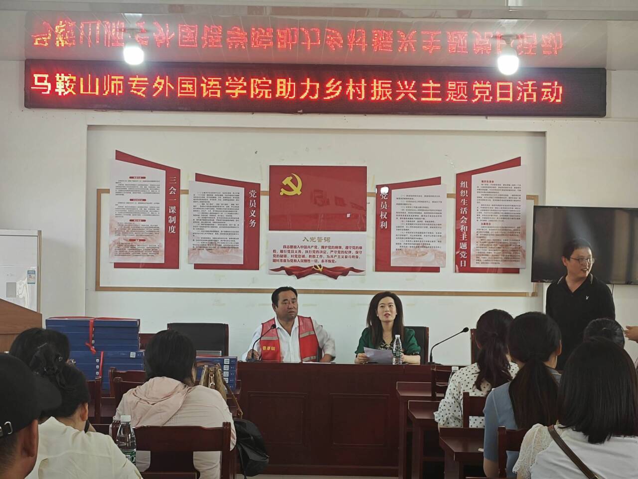 党员们首先来到了含山县纪委党风廉政教育展厅。在讲解员的引领下,大家回顾了中国共产党自建党以来开展廉政建设的历史,在这里,既有腐败的现象使人警醒,更有廉洁的榜样催人奋进,一个个生动鲜活的例子鞭策党员以严格的标准要求自己。之后,党员们来到了活动的第二站——和县凤台村,外国语学院向凤台村捐赠了16套无线鼠标键盘套装和16本办公记事簿,以实际行动助力乡村振兴。