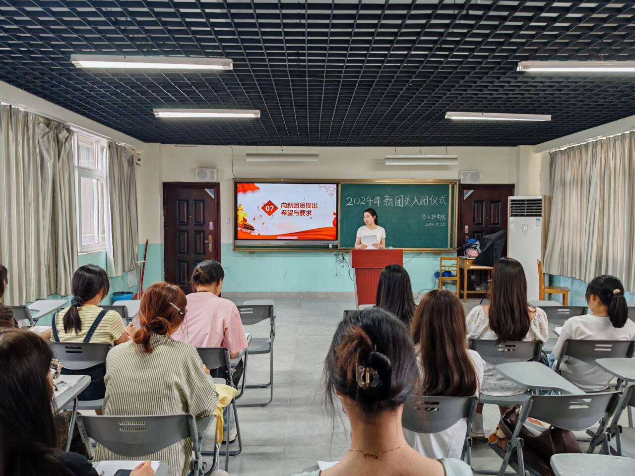 5月22日下午,外国语学院在精业楼501教室举办2024年新团员入团仪式,学生会组织部负责人解素新主持仪式,团总支书记陈盼盼出席并致辞。