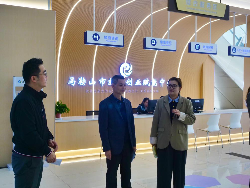 在红海人力资源有限公司,工作组重点参观了马鞍山市就业创业赋能中心。该中心由市人力资源中心市场升级改造而成,是集就业、创业、培训、零工、共享办公于一体的“一站式”服务综合体,整合了岗位对接、技能培训、创业指导、政策宣讲等多项服务,访企团队与企业负责人就毕业生就业精准匹配、就业技能提升培训、就业岗位信息共享等方面达成初步共识,双方约定将进一步加强合作,依托赋能中心平台,为学院毕业生提供更多优质就业资源和针对性帮扶。